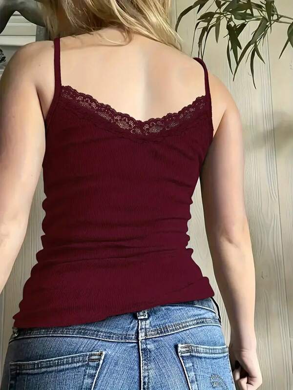 เสื้อกล้ามคอลูกไม้ สีพื้น ทอลายริ้ว ใส่สบายฤดูร้อน